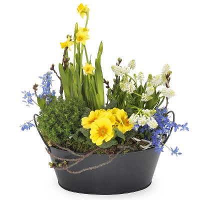 La våre dyktige dekoratører designe en beplantning inspirert av våren. Med vakre påskeliljer og sesongens blomster er dette en kreasjon som imponerer. Perfekt når du vil sende en blomstrende påskehilsen til noen du liker. Hver beplantning er unikt designet spesielt for deg og settes sammen ut fra sortiment og sesong. Arrangementet leveres av en lokal blomsterhandler.